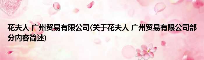 花夫人 广州贸易有限公司(关于花夫人 广州贸易有限公司部分内容简述)