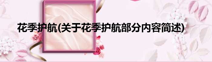 大家好,今天小方来说说一篇关于花季护航,关于花季护航部分内容简述的文章,那么现在就为大家来简单介绍下,希望对各位小伙伴们有所帮助。