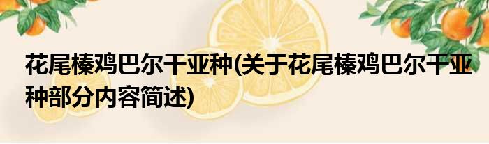 花尾榛鸡巴尔干亚种(关于花尾榛鸡巴尔干亚种部分内容简述)
