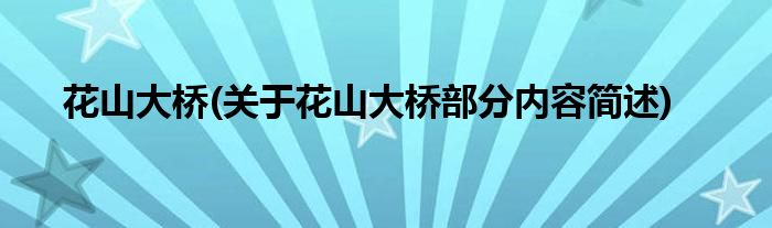大家好,今天小方来说说一篇关于花山大桥,关于花山大桥部分内容简述的文章,那么现在就为大家来简单介绍下,希望对各位小伙伴们有所帮助。