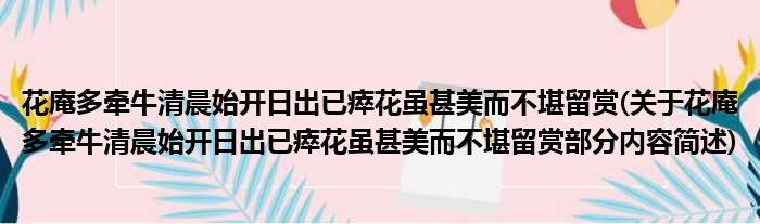 花庵多牵牛清晨始开日出已瘁花虽甚美而不堪留赏(关于花庵多牵牛清晨始开日出已瘁花虽甚美而不堪留赏部分内容简述)
