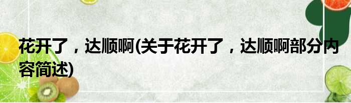 花开了,达顺啊(关于花开了,达顺啊部分内容简述)