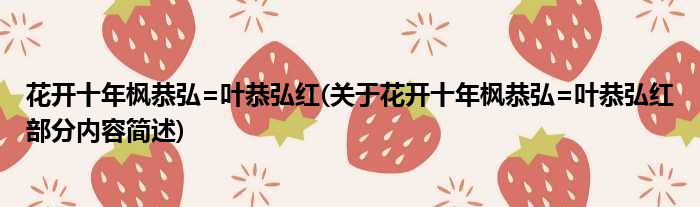 花开十年枫恭弘=叶恭弘红(关于花开十年枫恭弘=叶恭弘红部分内容简述)