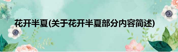 大家好,今天小方来说说一篇关于花开半夏,关于花开半夏部分内容简述的文章,那么现在就为大家来简单介绍下,希望对各位小伙伴们有所帮助。