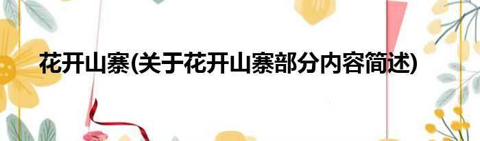 大家好,今天小方来说说一篇关于花开山寨,关于花开山寨部分内容简述的文章,那么现在就为大家来简单介绍下,希望对各位小伙伴们有所帮助。