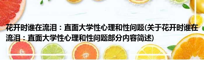 花开时谁在流泪:直面大学性心理和性问题(关于花开时谁在流泪:直面大学性心理和性问题部分内容简述)