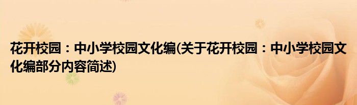 大家好,今天小方来说说一篇关于花开校园:中小学校园文化编,关于花开校园:中小学校园文化编部分内容简述的文章,那么现在就为大家来简单介绍下,希望对各位小伙伴们有所帮助。