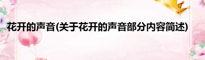 大家好,今天小方来说说一篇关于花开的声音,关于花开的声音部分内容简述的文章,那么现在就为大家来简单介绍下,希望对各位小伙伴们有所帮助。