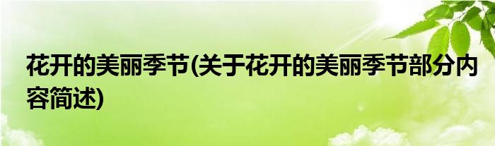 花开的美丽季节(关于花开的美丽季节部分内容简述)