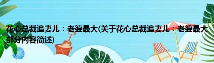 大家好,今天小方来说说一篇关于花心总裁追妻儿:老婆最大,关于花心总裁追妻儿:老婆最大部分内容简述的文章,那么现在就为大家来简单介绍下,希望对各位小伙伴们有所帮助。