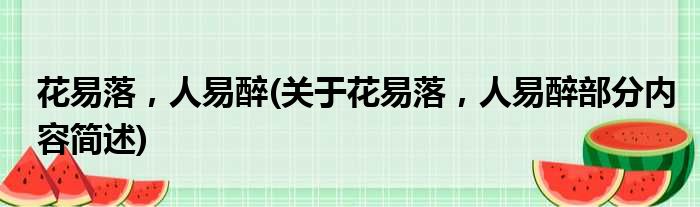 大家好,今天小方来说说一篇关于花易落,人易醉,关于花易落,人易醉部分内容简述的文章,那么现在就为大家来简单介绍下,希望对各位小伙伴们有所帮助。