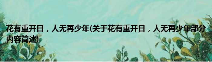 花有重开日,人无再少年(关于花有重开日,人无再少年部分内容简述)