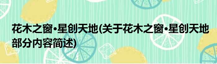 花木之窗·星创天地(关于花木之窗·星创天地部分内容简述)