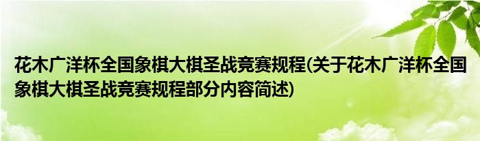 花木广洋杯全国象棋大棋圣战竞赛规程(关于花木广洋杯全国象棋大棋圣战竞赛规程部分内容简述)