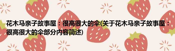 大家好,今天小方来说说一篇关于花木马亲子故事屋:很高很大的伞,关于花木马亲子故事屋:很高很大的伞部分内容简述的文章,那么现在就为大家来简单介绍下,希望对各位小伙伴们有所帮助。