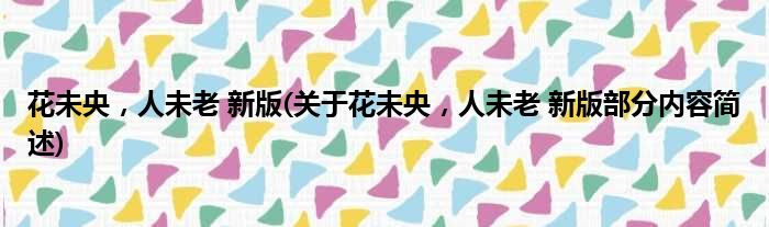 花未央,人未老 新版(关于花未央,人未老 新版部分内容简述)