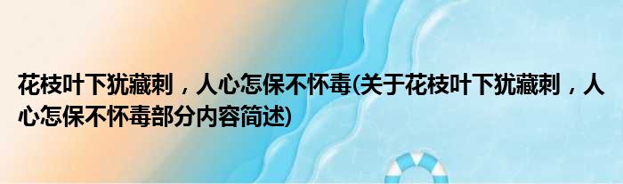 花枝叶下犹藏刺,人心怎保不怀毒(关于花枝叶下犹藏刺,人心怎保不怀毒部分内容简述)