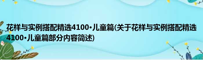 花样与实例搭配精选4100·儿童篇(关于花样与实例搭配精选4100·儿童篇部分内容简述)