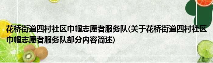 花桥街道四村社区巾帼志愿者服务队(关于花桥街道四村社区巾帼志愿者服务队部分内容简述)