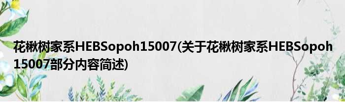 花楸树家系HEBSopoh15007(关于花楸树家系HEBSopoh15007部分内容简述)