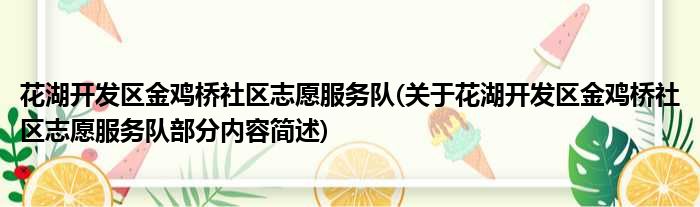 花湖开发区金鸡桥社区志愿服务队(关于花湖开发区金鸡桥社区志愿服务队部分内容简述)