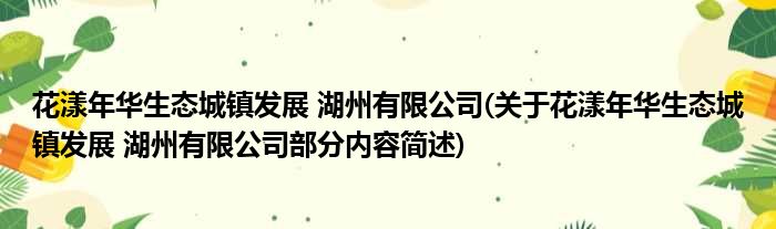 花漾年华生态城镇发展 湖州有限公司(关于花漾年华生态城镇发展 湖州有限公司部分内容简述)
