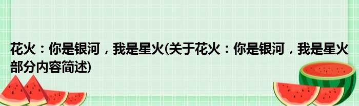 花火:你是银河,我是星火(关于花火:你是银河,我是星火部分内容简述)