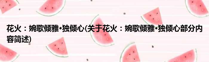 花火:婉歌倾雅·独倾心(关于花火:婉歌倾雅·独倾心部分内容简述)