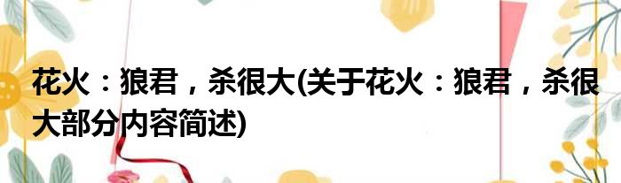 花火:狼君,杀很大(关于花火:狼君,杀很大部分内容简述)