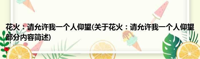 花火:请允许我一个人仰望(关于花火:请允许我一个人仰望部分内容简述)