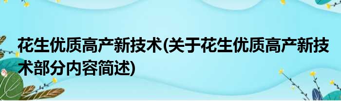花生优质高产新技术(关于花生优质高产新技术部分内容简述)