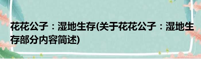 花花公子:湿地生存(关于花花公子:湿地生存部分内容简述)