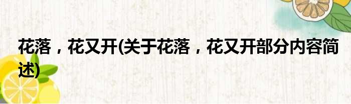 大家好,今天小方来说说一篇关于花落,花又开,关于花落,花又开部分内容简述的文章,那么现在就为大家来简单介绍下,希望对各位小伙伴们有所帮助。