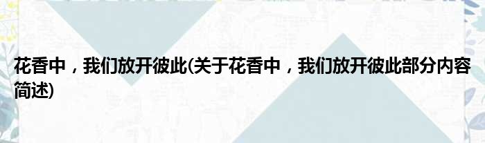 花香中,我们放开彼此(关于花香中,我们放开彼此部分内容简述)