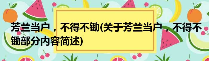 芳兰当户,不得不锄(关于芳兰当户,不得不锄部分内容简述)
