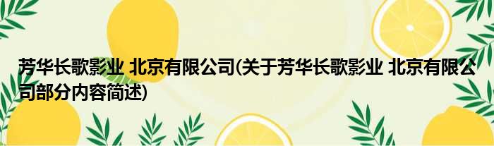 芳华长歌影业 北京有限公司(关于芳华长歌影业 北京有限公司部分内容简述)