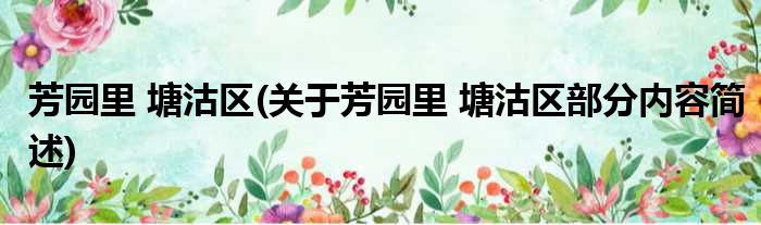 芳园里 塘沽区(关于芳园里 塘沽区部分内容简述)