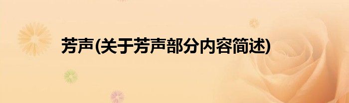 大家好,今天小方来说说一篇关于芳声,关于芳声部分内容简述的文章,那么现在就为大家来简单介绍下,希望对各位小伙伴们有所帮助。