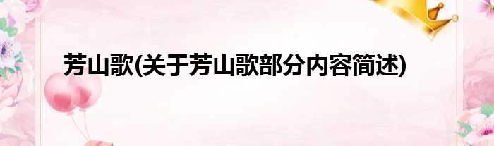 大家好,今天小方来说说一篇关于芳山歌,关于芳山歌部分内容简述的文章,那么现在就为大家来简单介绍下,希望对各位小伙伴们有所帮助。