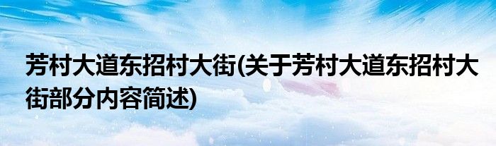 芳村大道东招村大街(关于芳村大道东招村大街部分内容简述)