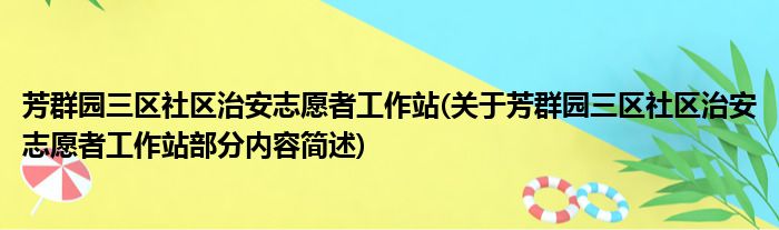 芳群园三区社区治安志愿者工作站(关于芳群园三区社区治安志愿者工作站部分内容简述)