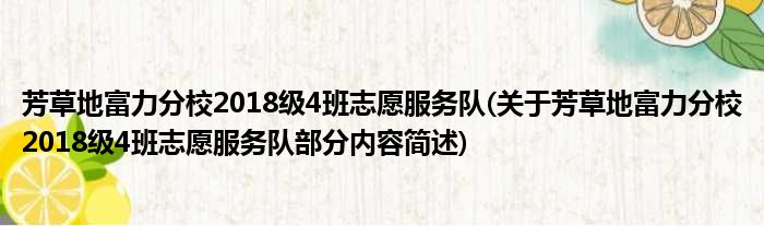 芳草地富力分校2018级4班志愿服务队(关于芳草地富力分校2018级4班志愿服务队部分内容简述)