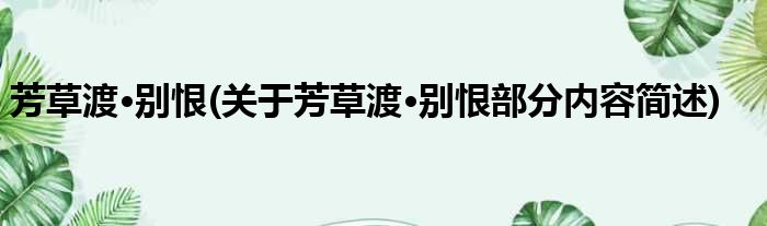 芳草渡·别恨(关于芳草渡·别恨部分内容简述)