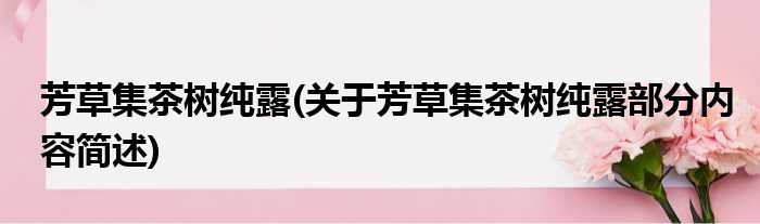 芳草集茶树纯露(关于芳草集茶树纯露部分内容简述)