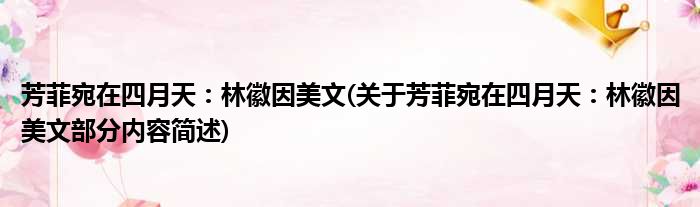 芳菲宛在四月天:林徽因美文(关于芳菲宛在四月天:林徽因美文部分内容简述)