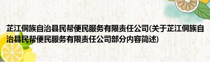 芷江侗族自治县民帮便民服务有限责任公司(关于芷江侗族自治县民帮便民服务有限责任公司部分内容简述)