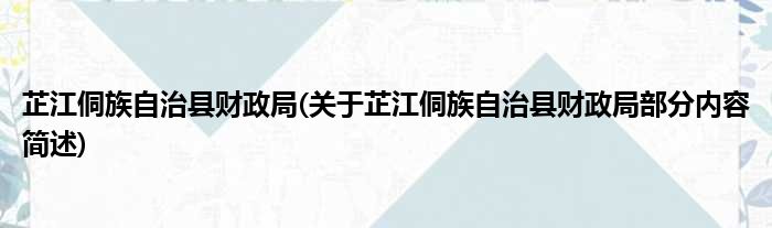 芷江侗族自治县财政局(关于芷江侗族自治县财政局部分内容简述)