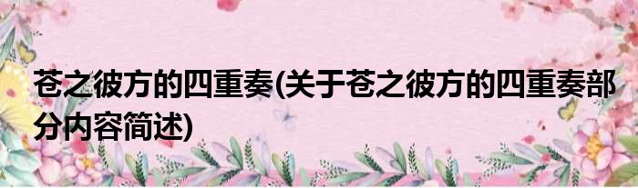大家好,今天小方来说说一篇关于苍之彼方的四重奏,关于苍之彼方的四重奏部分内容简述的文章,那么现在就为大家来简单介绍下,希望对各位小伙伴们有所帮助。