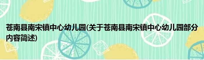 苍南县南宋镇中心幼儿园(关于苍南县南宋镇中心幼儿园部分内容简述)