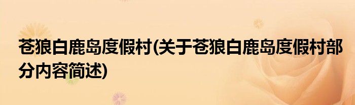苍狼白鹿岛度假村(关于苍狼白鹿岛度假村部分内容简述)